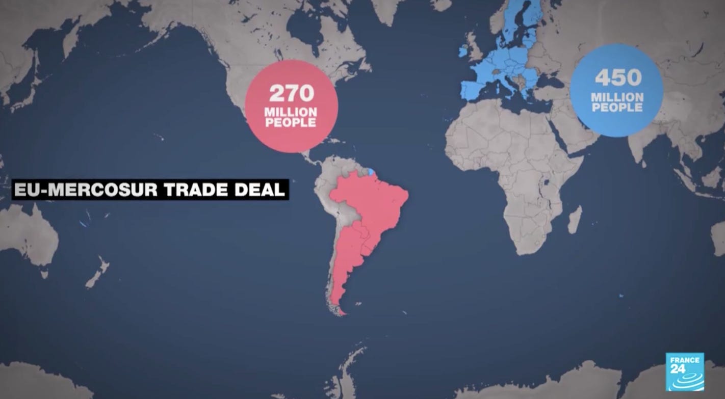 Evident, nu e totul roz și trebuie să admitem deschis și sincer că unele ferme europene, în special cele care au refuzat modernizarea, vor pierde competiția din cauza mâncării ieftine care va veni din America de Sud. Carnea de vită braziliană sau puiul argentinian vor pune o presiune imensă pe prețuri. Dar dacă tragem linie și facem calculul final, sacrificiul unor segmente agricole necompetitive e prețul pe care trebăuie să-l plătim pentru ca industria auto, chimică și tehnologică a Europei să prospere și să aibă piețe de desfacere și resurse critice.