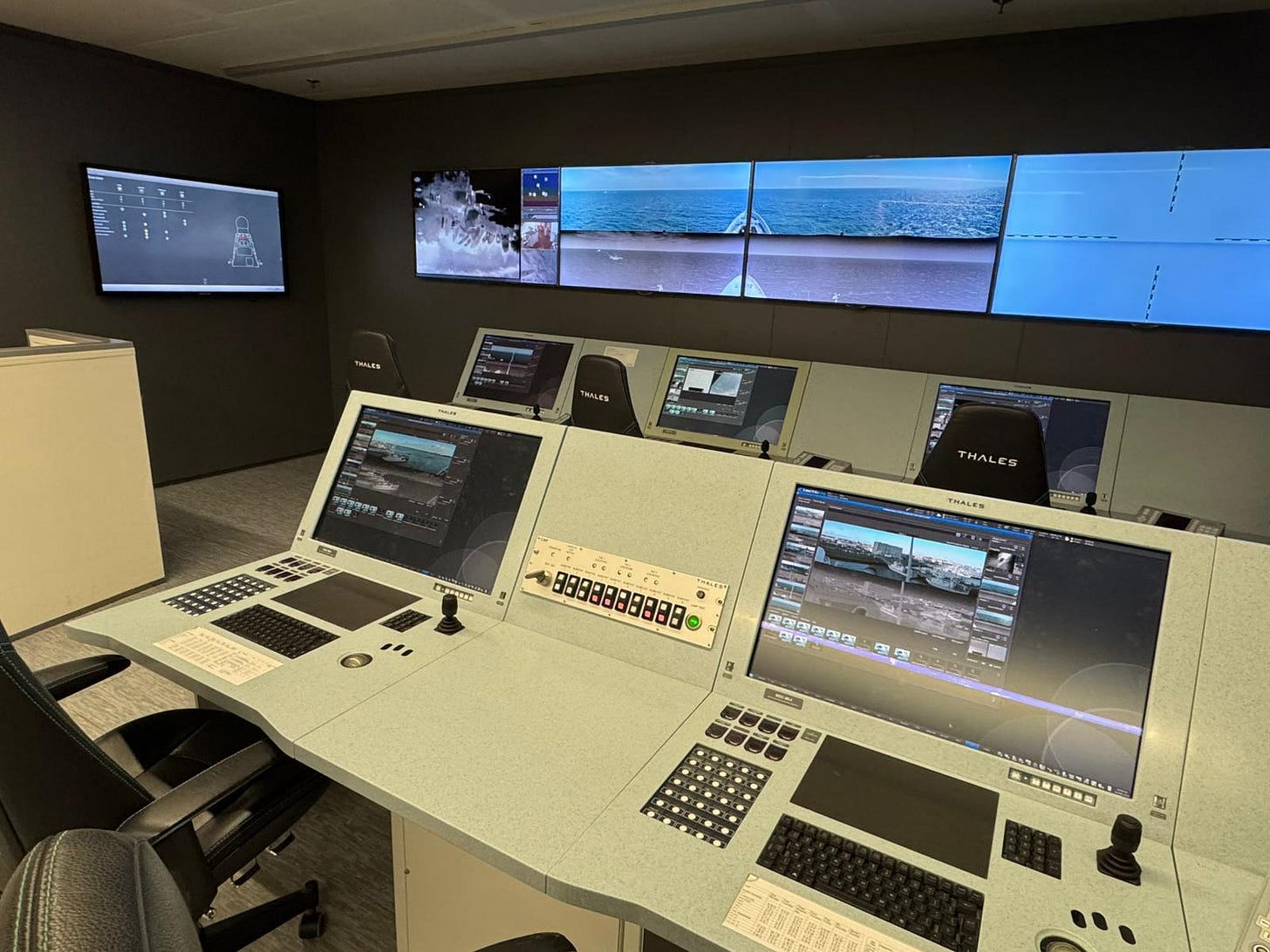 În acest spațiu industrial am văzut cum arată, în realitate, infrastructura tehnologică din spatele unei nave moderne, de la algoritmi care procesează amenințări în timp real, console care simulează atacuri cu drone și rachete și ingineri care transformă date brute colectate în decizii de luptă.