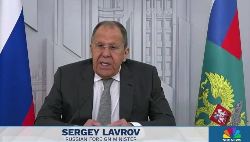 Spre finalul interviului la NBC, Lavrov a dat din nou drumul la banda obișnuită, acuzând Occidentul și în special pe liderii europeni că „nu vor pace” și că blochează orice negociere și reafirmând narativul Kremlinului conform căruia Rusia nu urmărește „interese teritoriale”, ci protejarea populației de limbă rusă din Donbas.