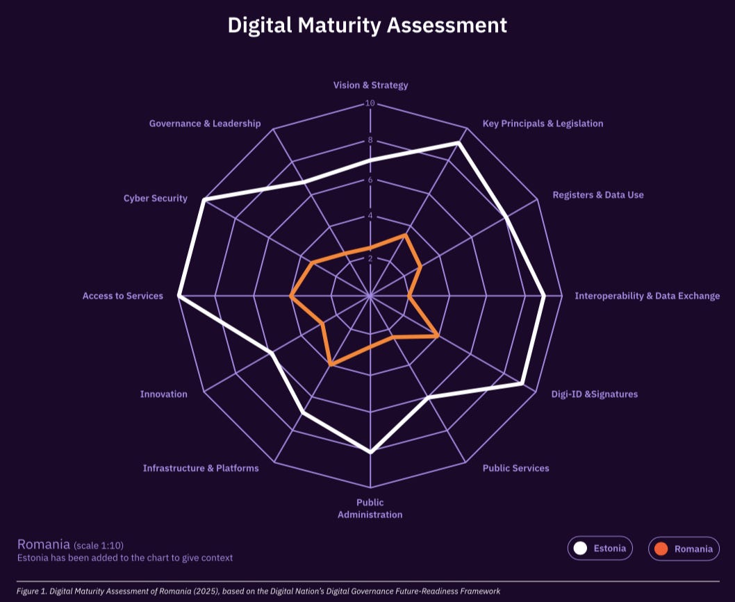 Și acum să vorbim puțin de această componentă fundamentală pentru ca o democrație în 2025 să funcționeze la parametri normali. Ce lipsește în digitalizarea României? GUVERNANȚA, după cum indică Raport Digital Nation realizat de specialiști din Estonia la inițiativa Edge Institute.